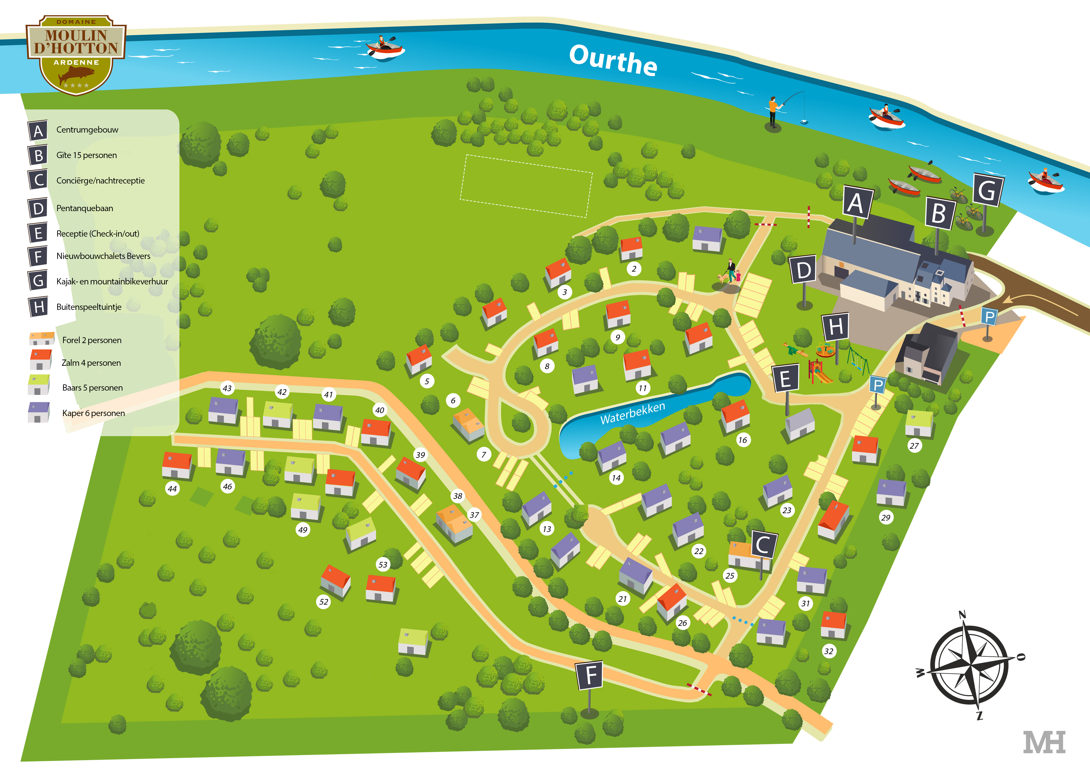 Ontdek al onze chalets pal aan de Ourthe. Iedere chalet heeft een overdekt privéterras én een priveparkeerplaats vlak aan de chalet.