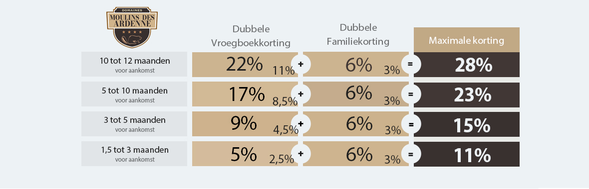 Vroeg boeken wordt beloond bij ons in de Ardennen.