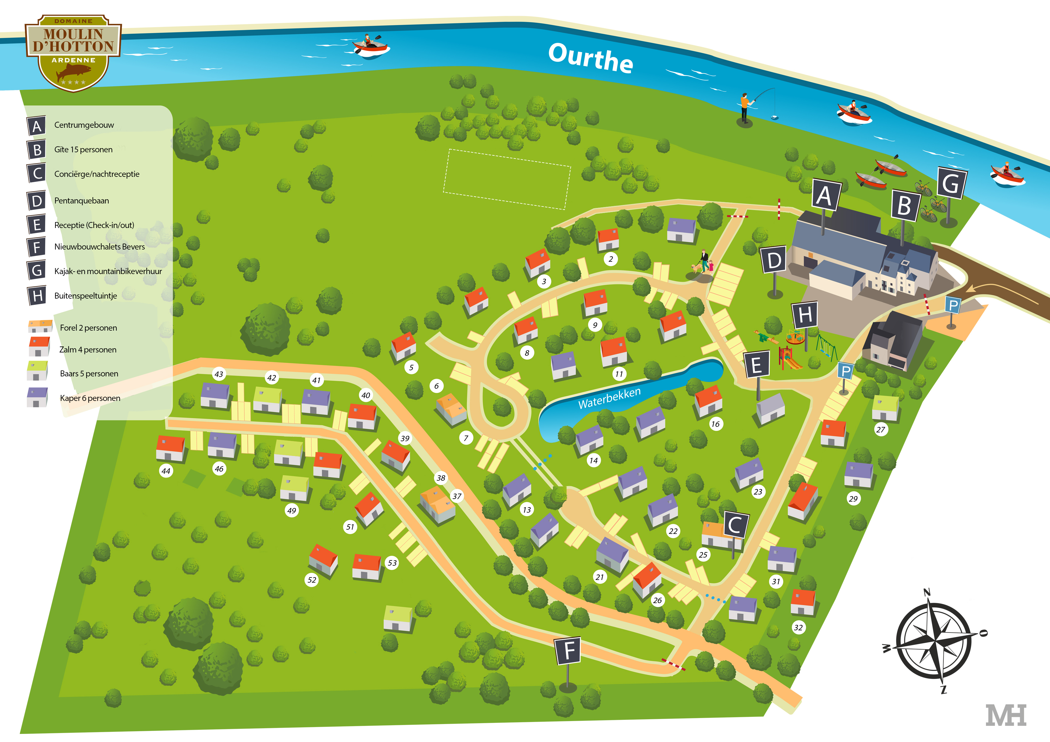 Ontdek al onze chalets pal aan de Ourthe. Iedere chalet heeft een overdekt privéterras én een priveparkeerplaats vlak aan de chalet.